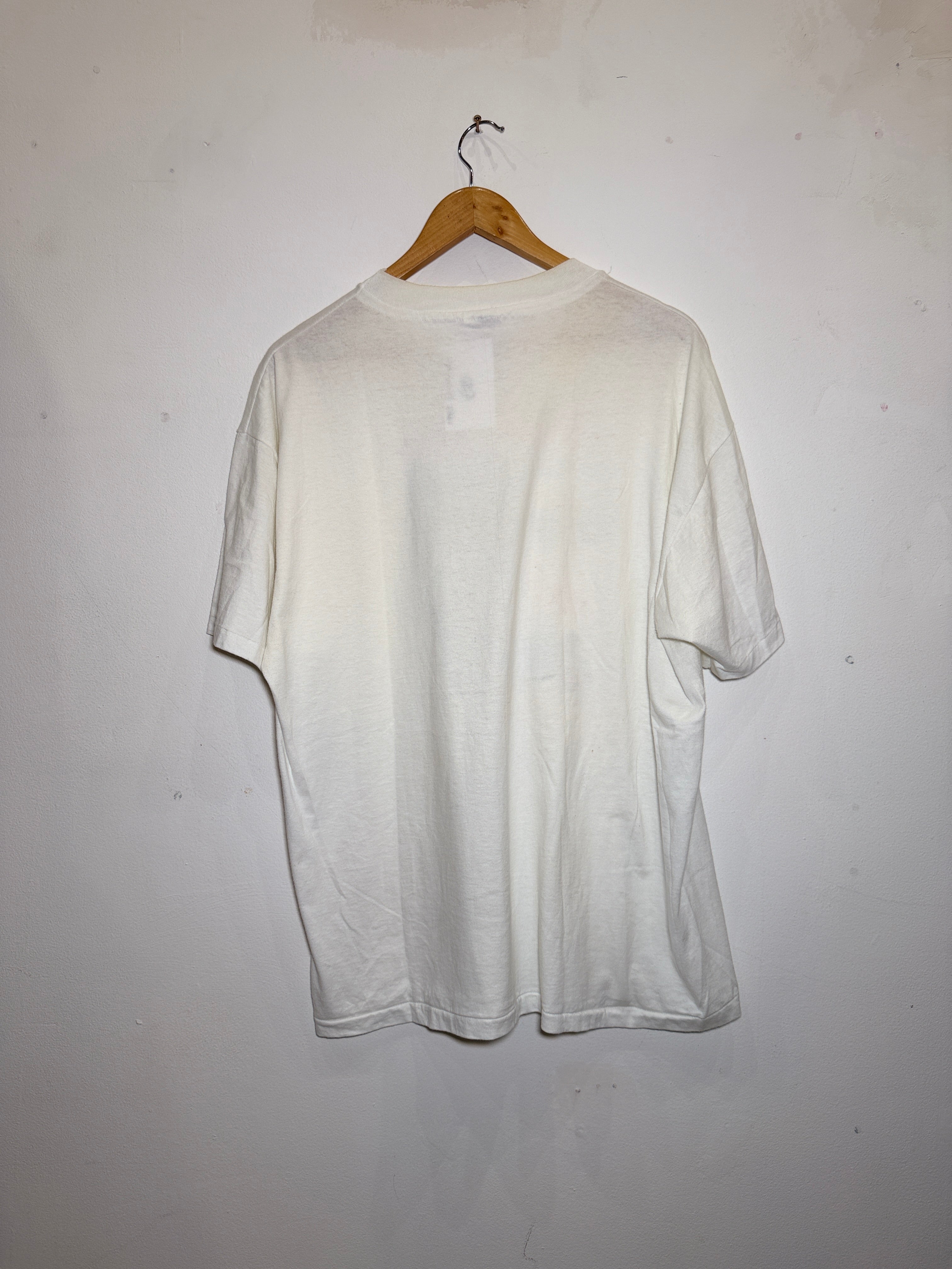 Straight from the '90s vault, this graphic tee brings retro cool to your everyday rotation. Bold, eye-catching design that screams nostalgia—perfect for anyone who loves that vintage aesthetic. Comfortable fit in XL, ideal for layering or wearing solo. A timeless piece that works whether you're channeling '90s vibes or just appreciate classic tee style. Grab yours and wear a slice of the decade.